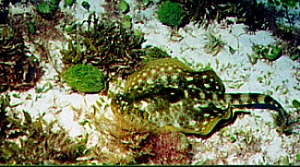 The Golden Ray is difficult to see on the sandy bottom.
