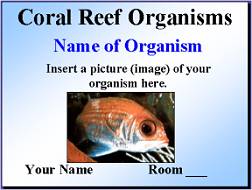 Divers need to present your findings on coral reef organisms and